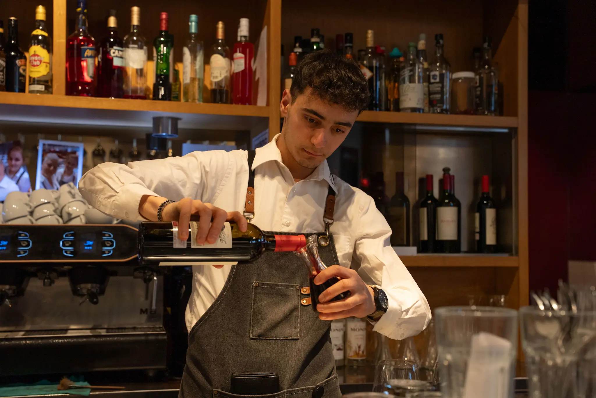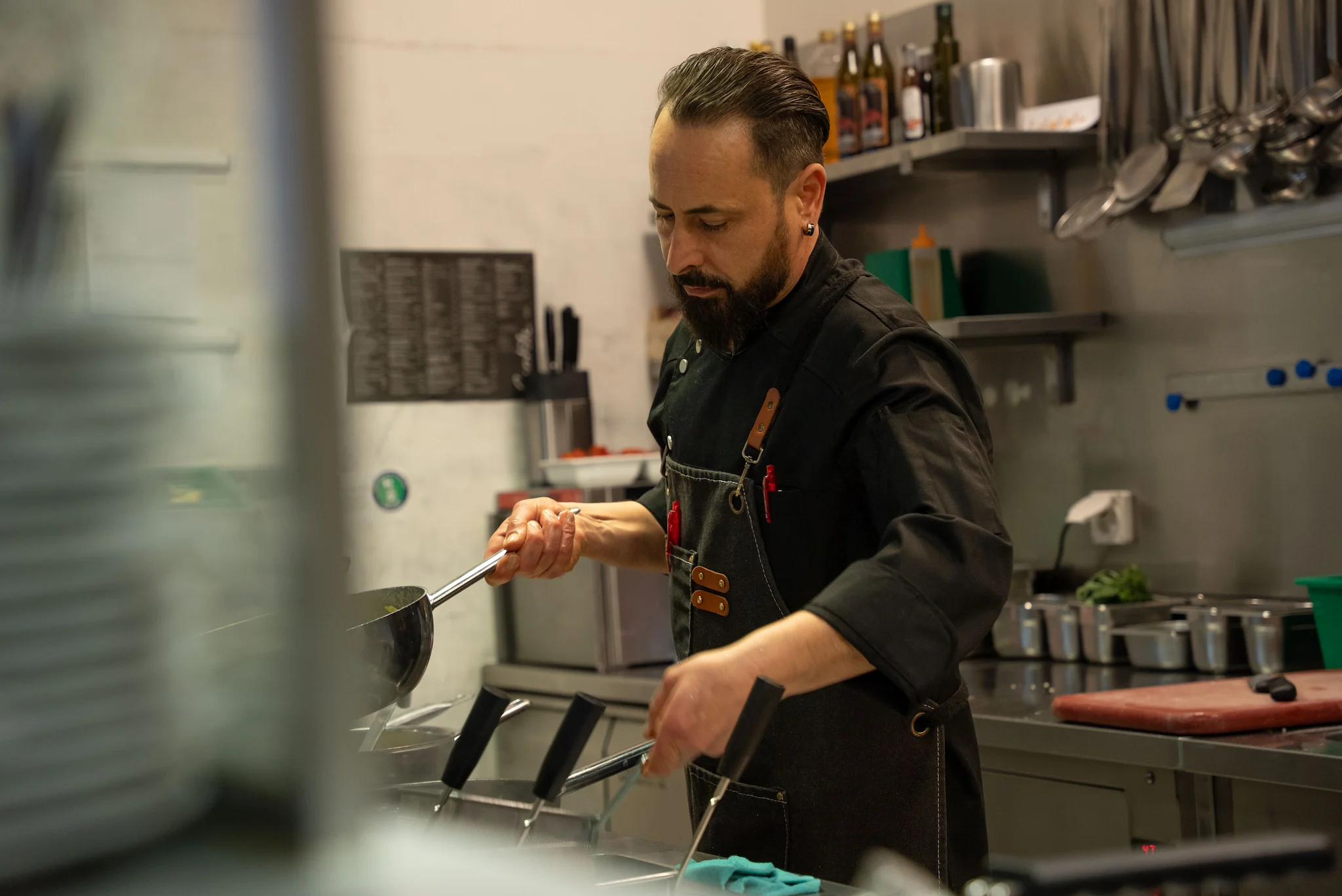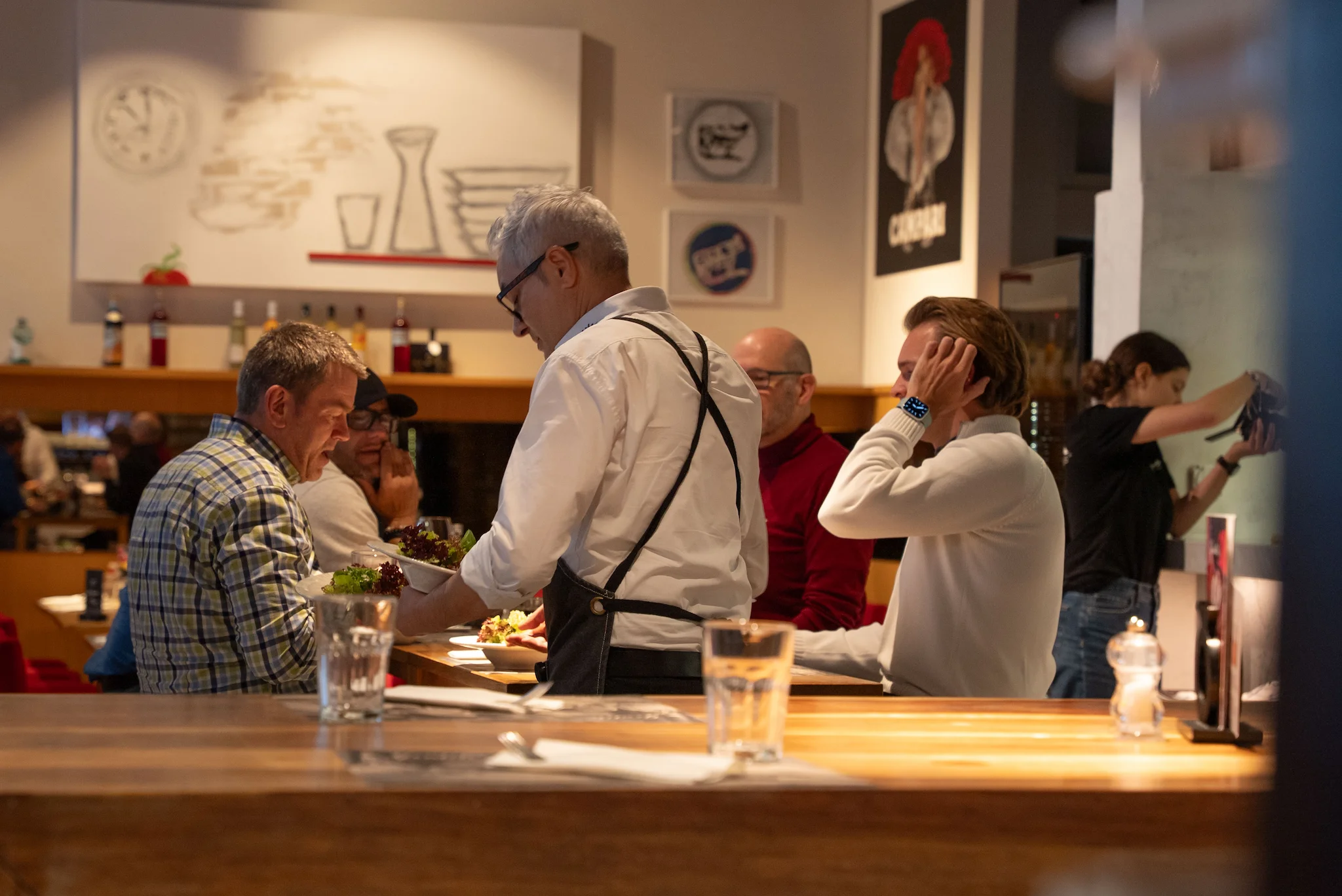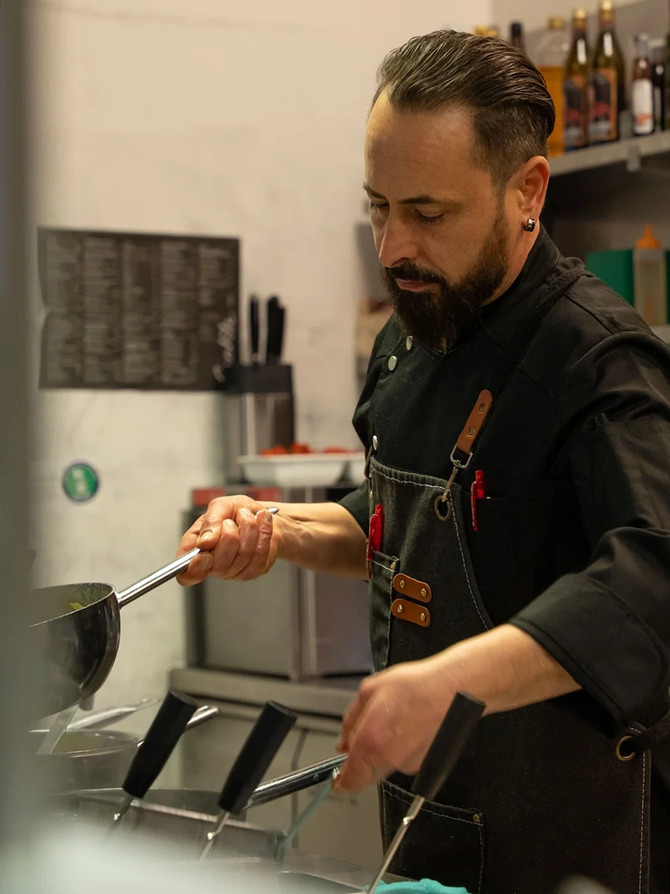 Unmittelbar an der Einkaufsstrasse und 100m vom Bahnhof entfernt können Sie ab 11.30 Uhr durchgehend warme Küche geniessen. Die einzigartige offene Küche kreiert ein Gefühl der Vertraulichkeit.